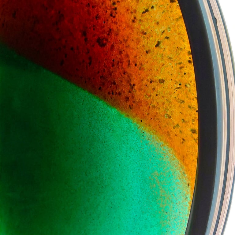 AEVUM (lot. laikas) - Kinetinis šviestuvas - švytintis, savarankiškai besisukantis, skirtingais skysčias pripildytas diskas - šviestuvas. Niekados neatsikartojantys, žvilgsnį pritraukiantys, gamtiškai chaotiški raštai papildo interjera unikaliu vizualu.